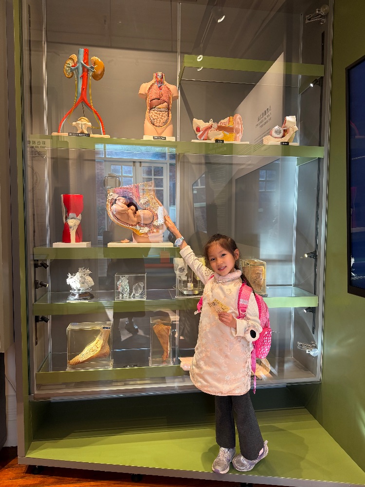 今天去了香港醫學博物館,發現原來人體結構非常複雜,我想能夠做到醫生一定要很努力讀書。等我來扮一扮中醫師吧!