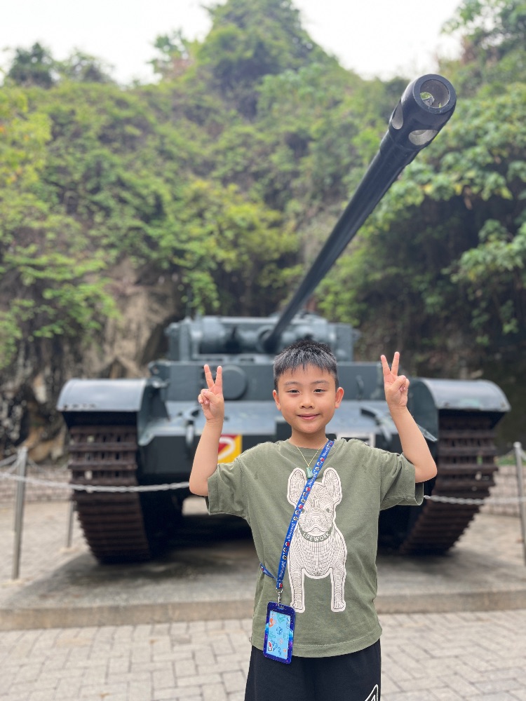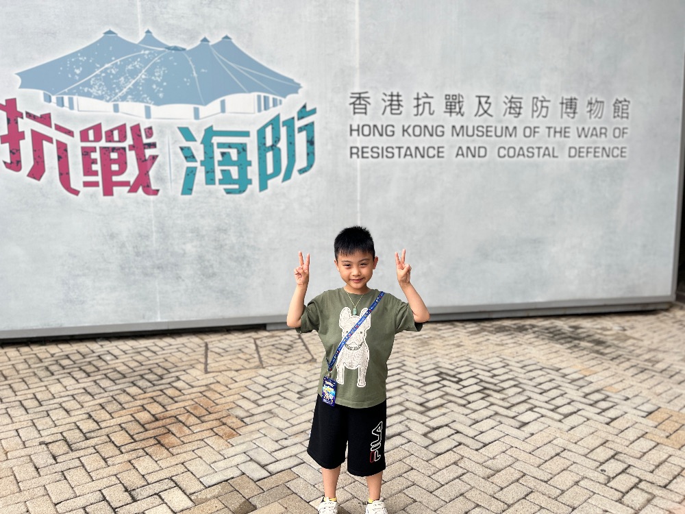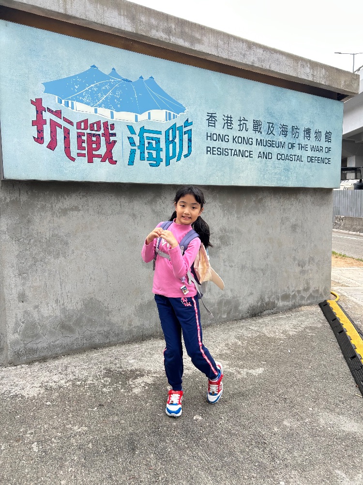 我今天參觀了香港抗戰及海防博物館,了解到在日軍入侵香港時,英國軍隊用的軍事設備,香港地型優勢,在不同山上設下炮台位置。希望不再有戰爭,世界和平。