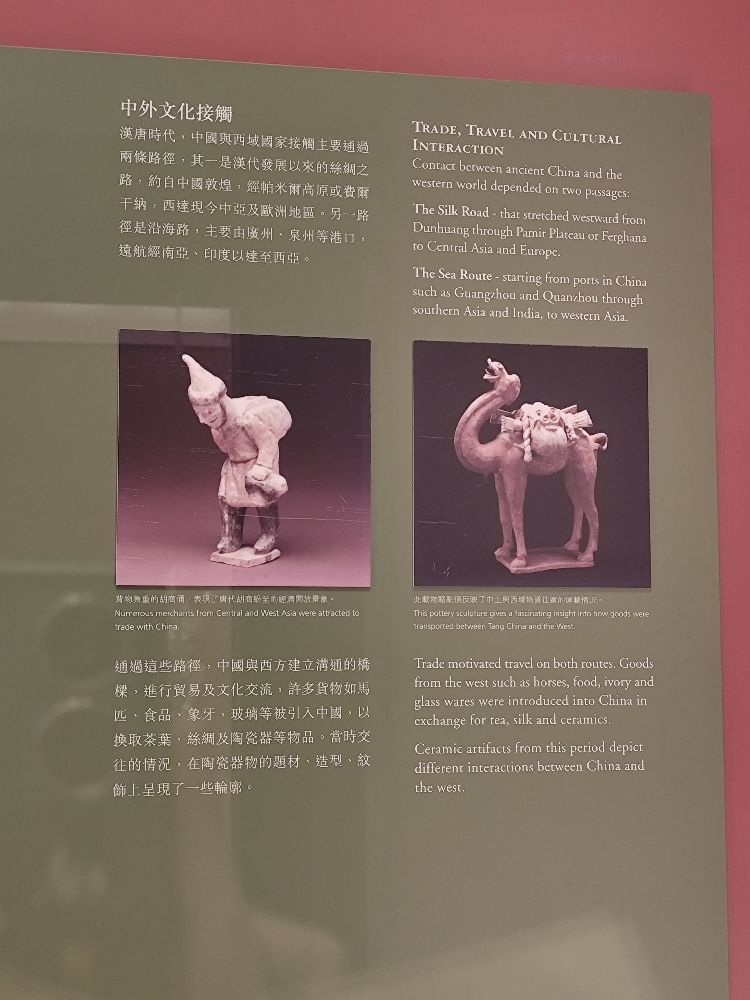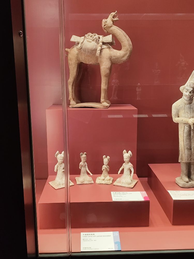 今天參觀博物館,了解到漢唐時期透過絲綢之路與海上絲路進行中外文化交流,唐代彩繪載物駱駝與伎樂女俑生動展現當時貿易往來與文化交融的繁榮景象。