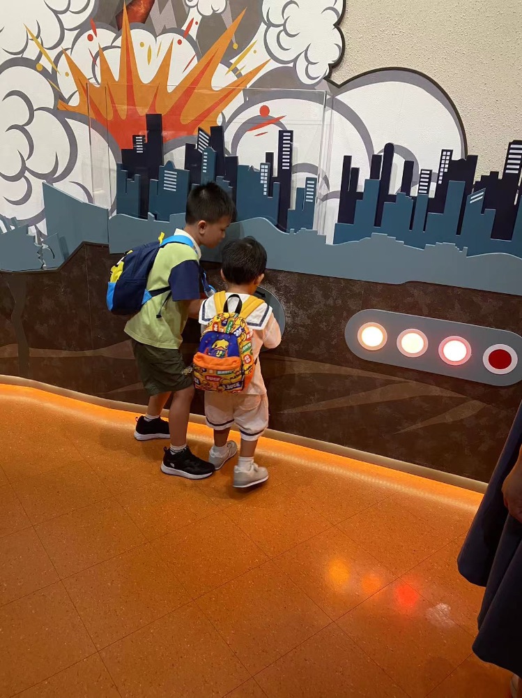 今天到了科學館,裏面有一個令我很深刻的體驗這就是個颱風的威力這體驗在這可以感受不同颱風的強度,最初我們調校最弱的強度那時候沒有什麼感覺,之後我們調得越大那個風力就越大我們跳到最大之後感覺站不穩了
