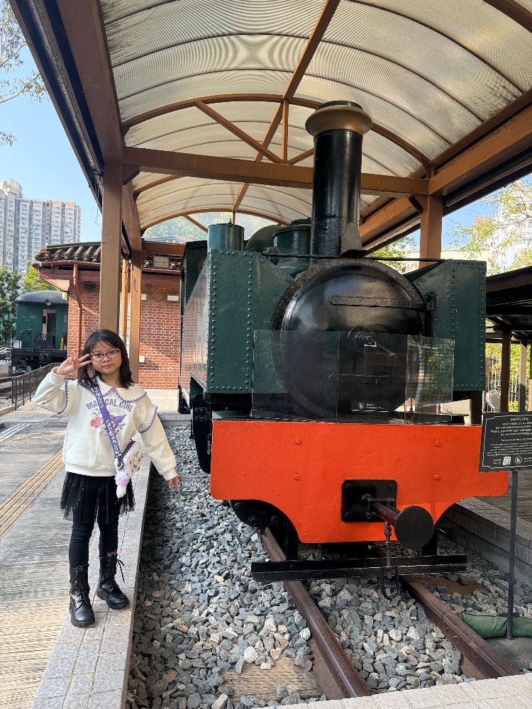 今天, 我一踏進鐵路博物館就被眼前的火車吸引了! 我立刻問媽媽是真的嗎? 原來這裏是舊大埔墟火車站改建而成。我興奮地站在路軌上拍照, 又走上火車參觀不同的車卡, 看到不同的座椅, 真有趣!