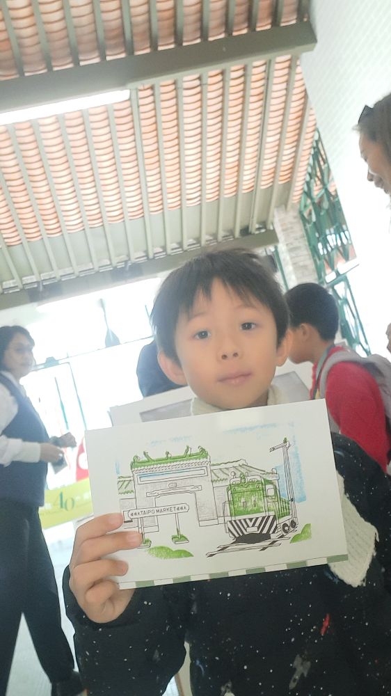 今天我跟爸媽和妹妹 一起參觀香港鐵路博物館, 這兒有很多舊式火車, 我感到很興奮。 最後我還在這兒印了一張明信片作手信留念。