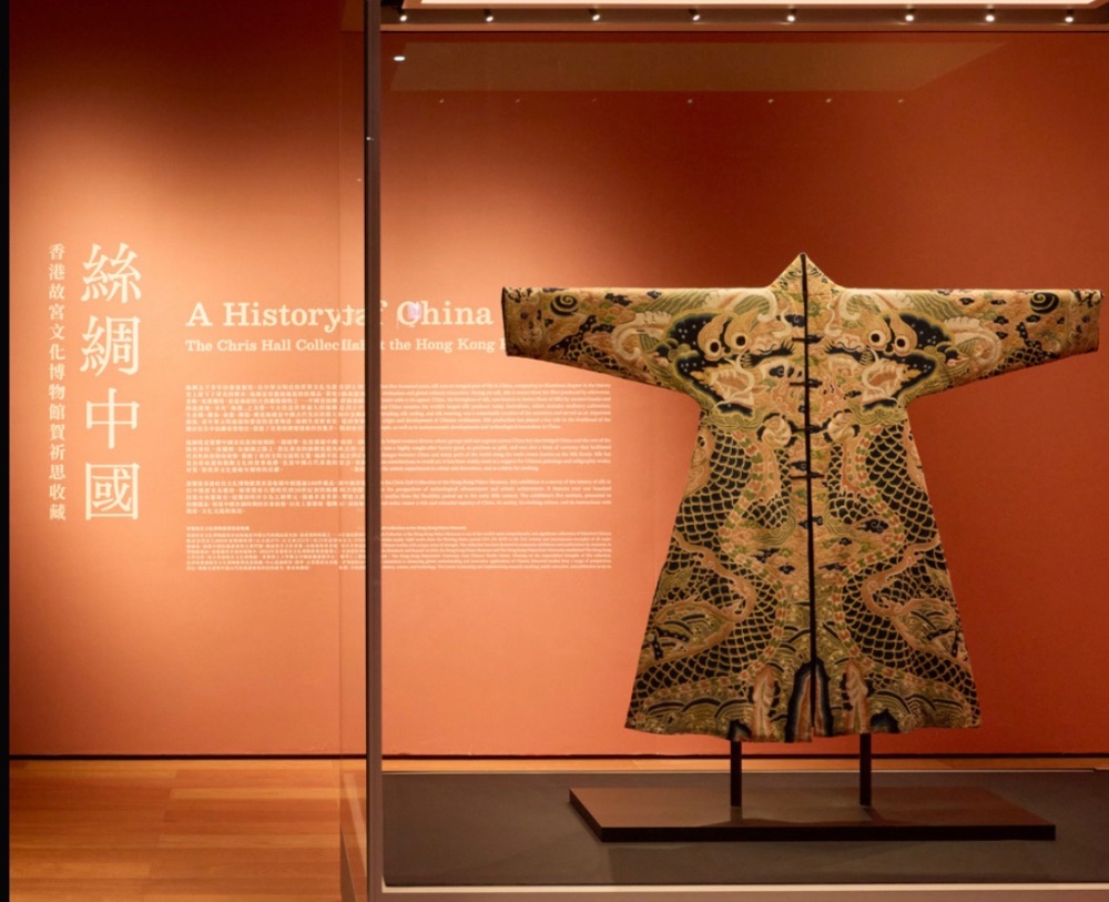 我去咗香港故宮文化博物館,看了一件清代皇帝專用的黃色龍袍,衣身通常繡有威武的龍形花紋,並包含十二章紋等象徵最高皇權的圖案。