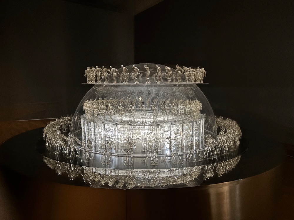 今天我去了M+博物館,第一時間我去了2樓,我看見了兩個又神秘又特別面在上面。然後我看見了隔離的是一幅山水畫吸引了我,像我走進森林裏。然後我走進了一個小房間發現裏面有一個水晶球,裏有無數個小人在走路。