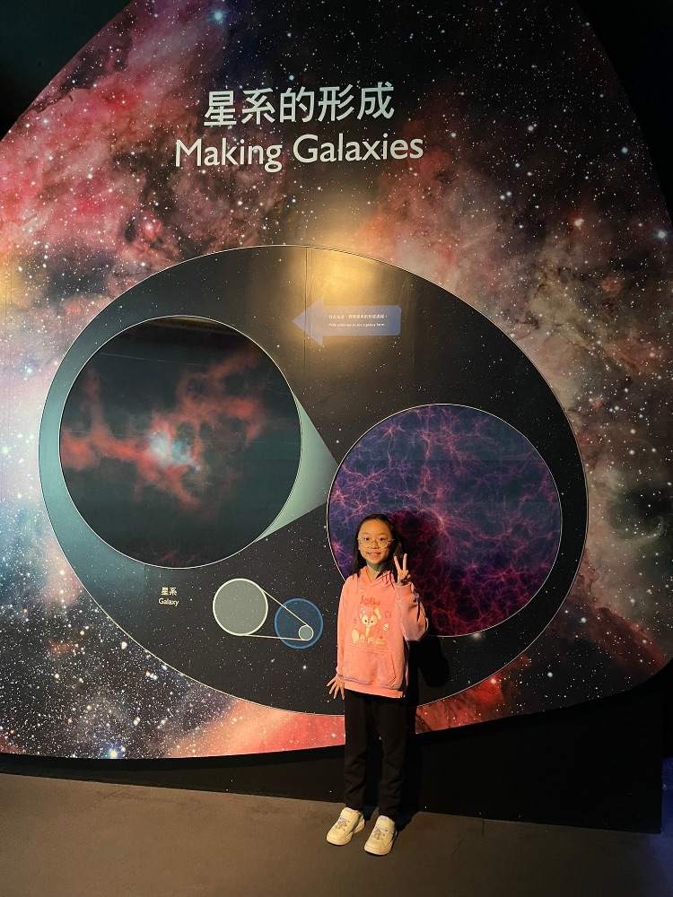 我和爸爸、媽媽、弟弟去太空館。這次的參觀另我更加了解宇宙上的恒星的特性。知道世界万物都是从奇點与宇宙爆炸而産生的,真神奇啊!