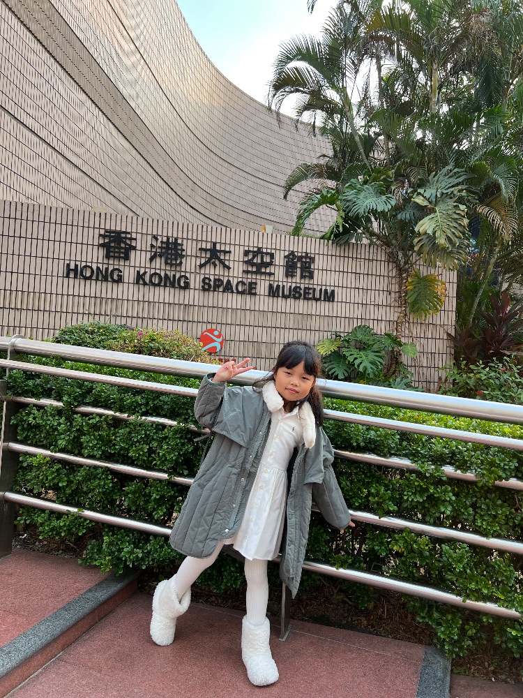 今天參觀了香港太空館,蛋形的大樓特別醒目。館裏的行星模型和天文展品特別有趣,讓我學到了好多宇宙的知識,真是難忘的一天!