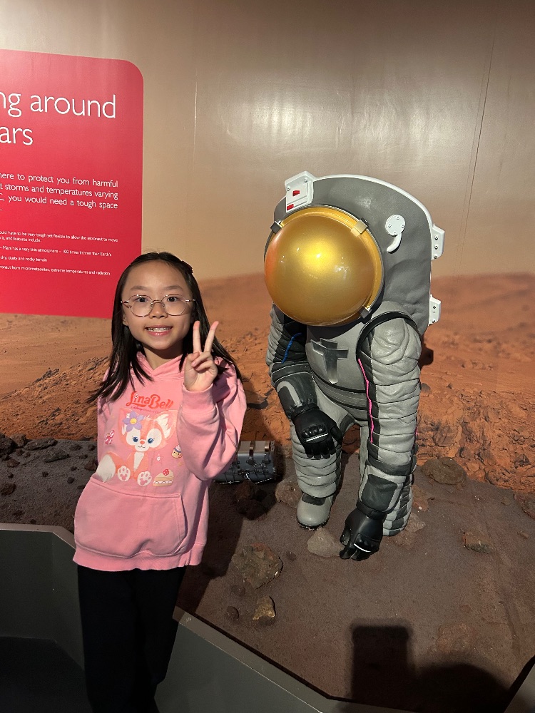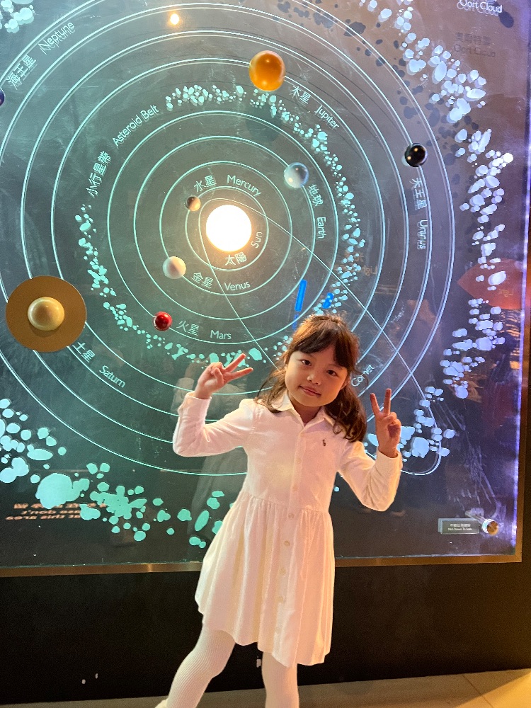 1月3日我和媽媽去參觀了香港太空館,館裏的行星模型和天文展品特別有趣,讓我學到了很多宇宙的知識。感到非常愉快的一天啊!