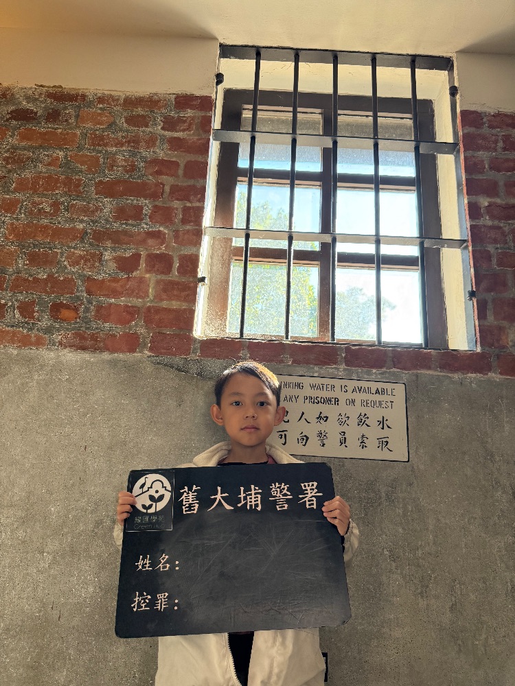 綠匯學苑以前係舊大埔警署,我一入去就見到好大塊草地,我哋參觀咗以前嘅報案室、囚室同槍房。有個舊式電話,好得意 !