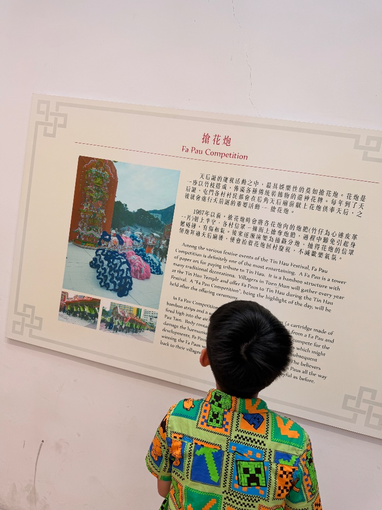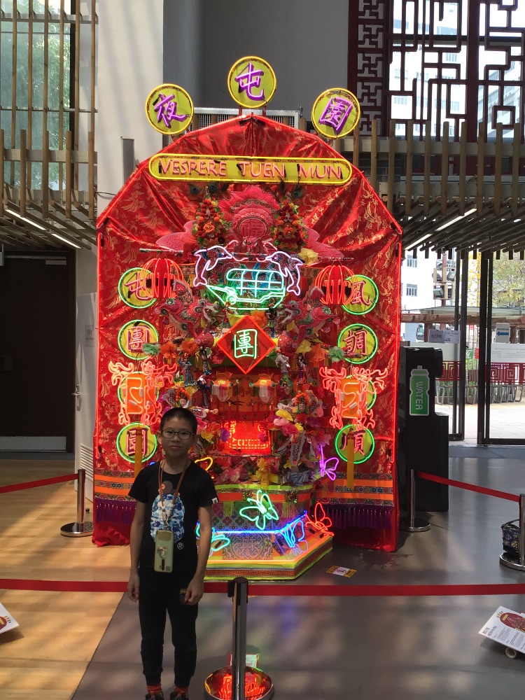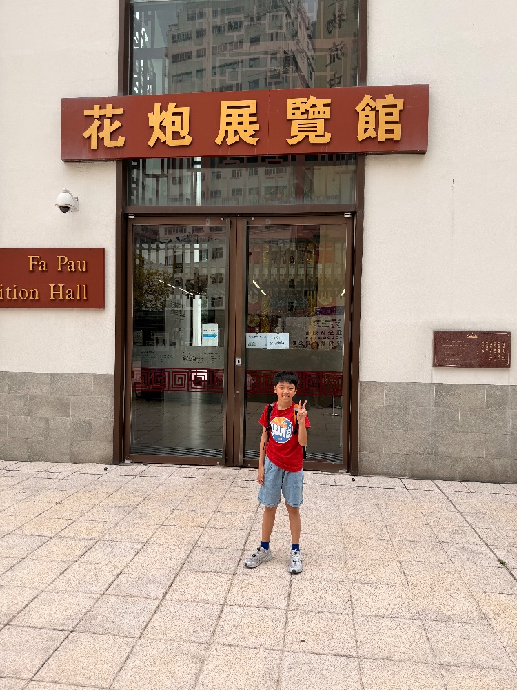 今天,爸媽帶了我去屯門天后廟的花炮展覽館參觀,在這裏我看到各式各樣的傳統花炮和神廟飾物,讓我深入了解本地民間風俗。