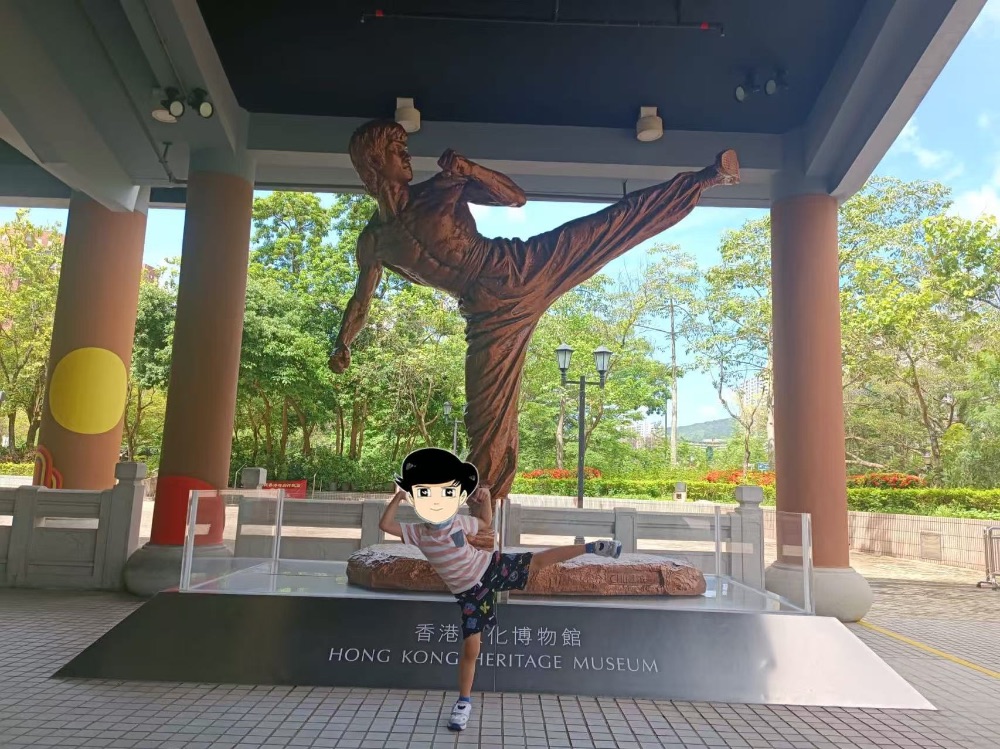 復活節假期,爸爸媽媽帶我參觀香港文化博物館。博物館正門入口廣場有3.5米高的李小龍銅像,非常霸氣。。。。。。。。。