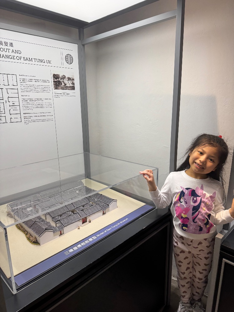 今天我和舅父媽媽和哥哥去了荃灣三棟屋博物館,我們看到很多歷史物品和三棟屋製作材料,還有這裏很大呢像迷宮一樣呢很多東西發現
