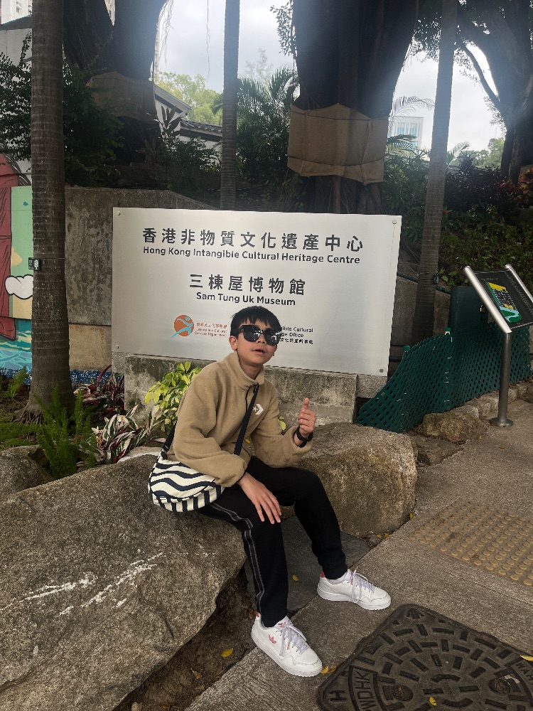 今天,我去了三棟屋博物館,我看到一個菠蘿包、 手造麻雀等等⋯⋯之後,我去咗看古代的舞龍舞獅的頭,於是我就觸摸它,可是職員告訴我不要觸摸,我便縮手,我真開心