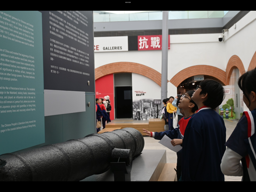 今日我和老師同學們去了香港抗戰及海防博物館,了解到香港的抗戰歷史和古蹟,看到炮台、火藥、軍裝,學到了不少關於以前的歷史。