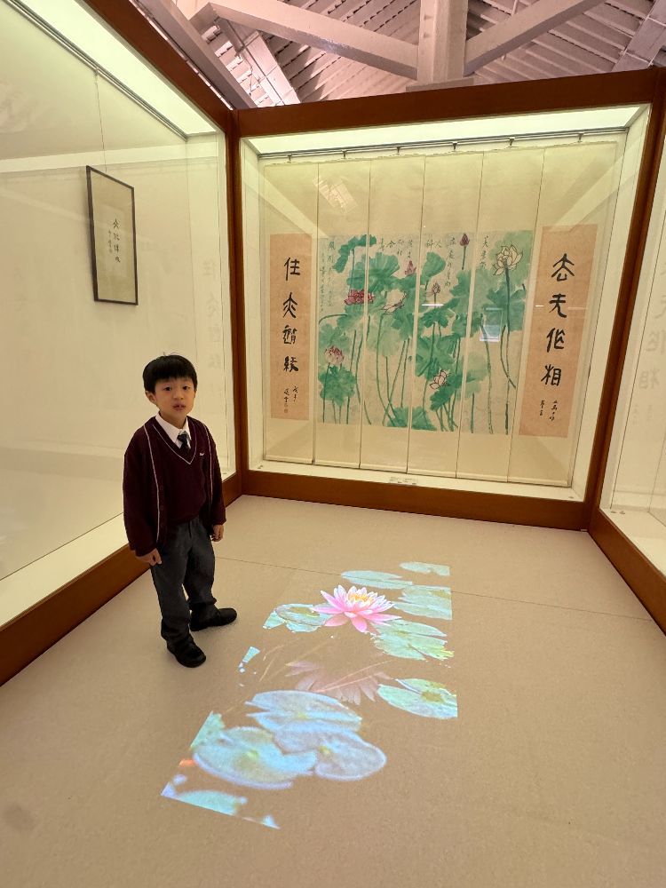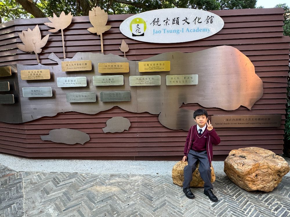 假期爸爸媽媽帶我去饒宗頤文化館參觀,我覺得好新奇!這裏有很多舊磚屋同大樹,環境好寧靜。我們參觀了展覽廳,裏面有很多書法及畫作。還有一幅好大的荷花圖,粉紅色花瓣像真的一樣,我好喜歡。中國文化真有趣!