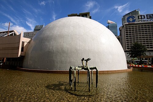 在M+里我喜欢的展览是坂本龙一观音・听时,它位于B2层,是幽暗安静的沉浸式声音影像展。巨大屏幕缓缓流动着柔和抽象的画面,搭配空灵舒缓的环绕音乐,能瞬间让人静下心来,抛开外界喧嚣,使人内心感到平静。