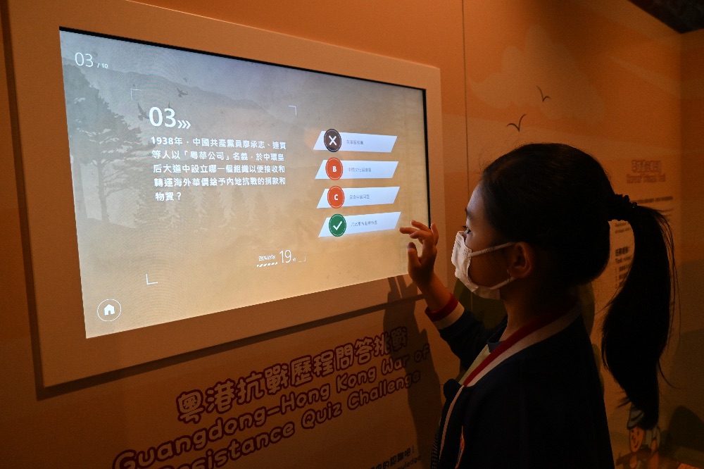 香港抗戰及海防博物館 我在看地圖,我和同學都很開心 氣氛很熱鬧,有很多防空洞和導彈很特別讓我印象深刻。