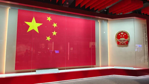 它比普通國旗還要大上許多,左上角鑲有五顆黃色五角星的紅色旗幟,旗幟圖案中的四顆小星環繞在一顆大星右側呈半環形