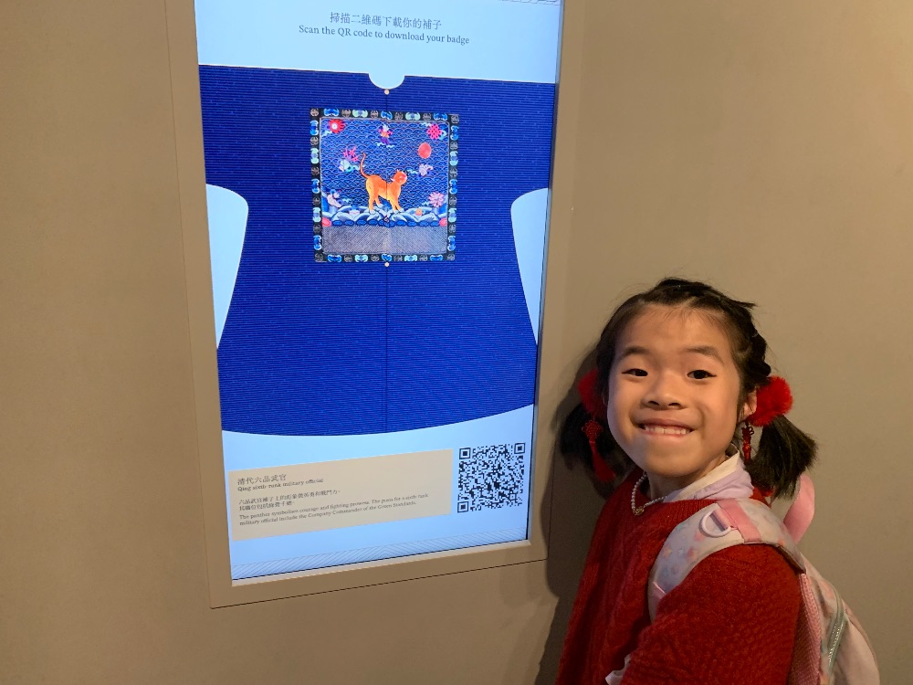 我今天去了香港故宮文化博物館,我看到埃及木乃伊、印度皇宮的珠寶、明代陶瓷、紫禁城裏的時鐘和留聲機。我最喜歡數字沉浸式體驗館,因為整幅牆有花朵、桃和海浪,還會動呢!