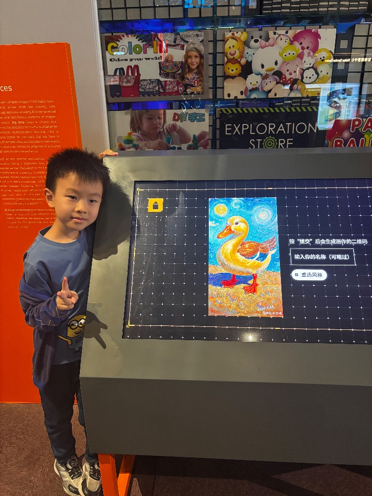 今天去了香港科學館,看到了很多科學原理,我們看到一個AI繪畫機,只要自己隨便畫圖選一個風格和寫一個名稱就可以得到一張好看的作品呢!