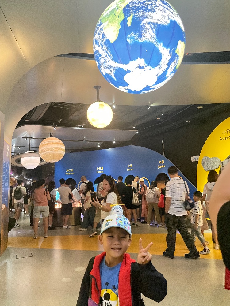 前些天爸爸媽媽帶我去參觀了太空館,學到關於我們宇宙和太空不同星球知識,探索了天文歷史遊戲,也參觀了我們中國航天科技發展的展覽館,看了天象廳3 D電影,真的非常之精彩啊!
